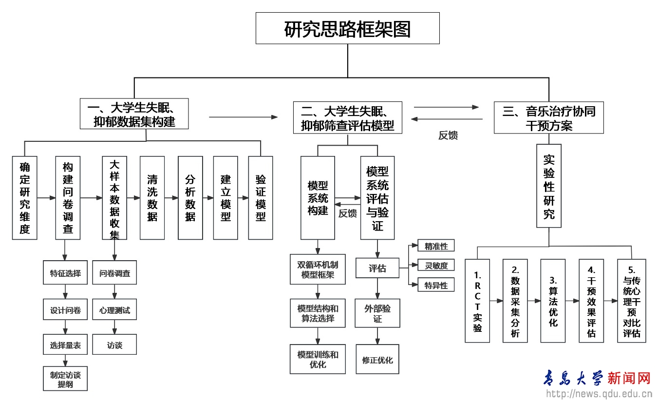 该项目通过大数据分析和模型构建,在系统验证大学生失眠、抑郁双循环关系的基础上,开发科学高效的筛查评估系统;深度挖掘大学生失眠、抑郁的形成路径、发生发展机制和共病/因果关系,在症状和病因学层面上揭示其相互影响机制、强度和方向;探索音乐治疗在大学生情绪神经机制与昼夜节律调控、社会支持与人际交往、自我意识与自我表达、情绪调节与睡眠管理方面的干预机制;发挥音乐治疗特色优势,建立非药物、安全有效,标准化、可复制推广的音乐治疗系统方案,增强大学生心理健康服务效能,推进高校心理健康教育多元化发展。