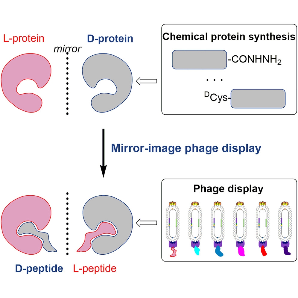 由于地球上尚未发现镜像的中心法则,镜像多肽和镜像蛋白质尚无法通过生物重组技术获取。目前,化学全合成是制备镜像多肽和镜像蛋白质的唯一途径。近年来,随着多肽和蛋白质合成及筛选技术的发展,镜像多肽和镜像蛋白质被开发出来,并在蛋白质结构解析、疾病诊断、生物医药开发、生命起源以及镜像生命再造等多个领域表现出应用潜力,受到科学家日益广泛的关注。