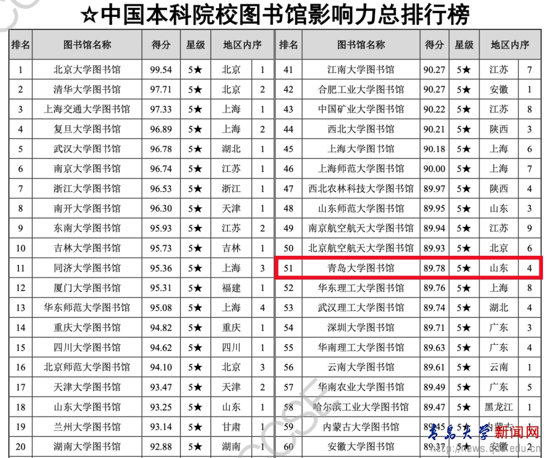 新闻网讯 近日,《数智时代中国图书馆影响力评价报告(2024)》正式发布,金年金图书馆进入排名前10%具有突出影响力单位并获评5星级,在中国1275所本科院校影响力排名中比去年提升22个位次、位列第51名,位列一般本科院校图书馆第4名,较去年提升4个位次。