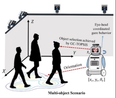 近年来,自动化学院切实推进“新工科”建设,服务国家战略和地方经济,积极探索高层次理工科拔尖创新人才培养的青大模式,组建了“张嗣瀛创新班”,旨在传承张嗣瀛院士教学科研理念,培养勤于实践、勇于创新的拔尖创新人才。朱浩宇同学入选“张嗣瀛创新班”后,在课题组于金鹏教授和刘晓瑞老师的共同指导下开展智能机器人领域的科研工作,采用EWM-Topsis模型表征并处理人类多模态社交信息,建立了基于量化社交意图强度驱动的机器人交互注意力生成机制。在社交意图细粒度计算与社交注意力实时更新的基础上,提出了机器人仿人“眼-头”协同注视的交互行为控制架构,实现了机器人自发性仿人社交行为生成与控制的全新范式。