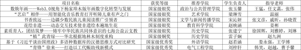 自大赛启动以来,学校积极响应号召,全校各学院广泛动员,共有250个项目报名参赛,参与师生达1800余人次。经校内外专家评审团严格的网络评选、现场终评,择优推荐了8个项目且均在国赛中获奖,彰显了学校在新文科教育改革方面的显著成效和人才培养质量的稳步提升。