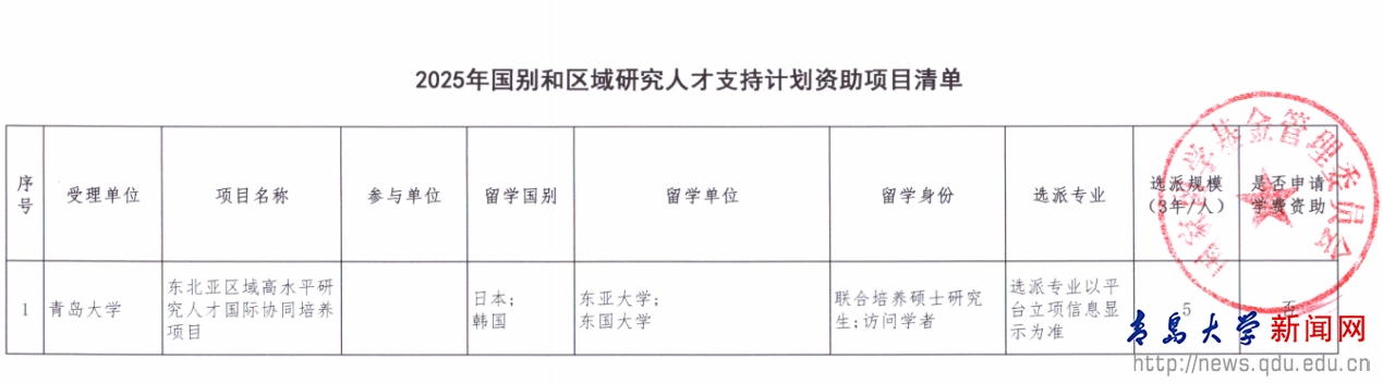 新闻网讯 近日,国家留学基金管理委员会(以下简称“国家留基委”)公布了2025年“国别区域研究人才支持计划”资助项目名单,由金年金政治与公共管理学院牵头申报的“东北亚区域高水平研究人才国际协同培养项目”成功获批。这是学校首次获批此类项目,标志着金年金区域国别研究人才培养工作取得新突破。