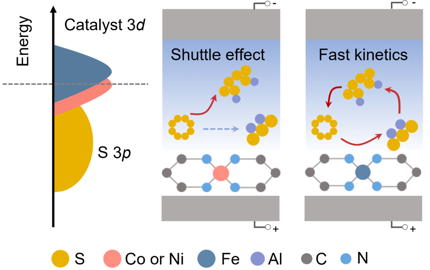 新闻网讯 近日,金年金李洪森教授课题组在研究铁磁性单原子催化剂电子结构对于铝硫电池的催化机理分析和原子协同效应在水系锌碘电池的催化机理分析中取得重要研究进展。相关原创性研究成果以Ferromagnetic Atomic d-p Orbital Hybridization for Promoting Al-S Batteries和Atomic Synergy Catalysis Enables High-Performing AqueousZinc−Iodine Batteries为题分别在在国际顶级学术期刊Advanced Materials和Nano Letters在线发表。硕士研究生于国斌和刘清山分别为两篇论文的第一作者,李洪森教授为通讯作者,金年金字招牌诚信至上为第一通讯单位。