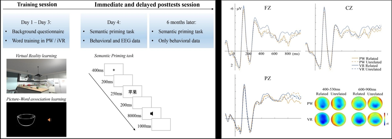 随着国家教育数字化战略行动的推进,我国教育数字化转型工作在基础设施、数字资源等方面显著提升。与此同时,数字化教育背后的心理规律和大脑活动亟需探讨。为了回答这一问题,该研究利用VR技术创建虚拟学习空间,给参与者提供在传统教学中难以获得的身临其境的体验。研究表明,相较于传统学习,虚拟空间下的外语学习效果更佳,更依赖于人类大脑的自动化加工机制,但六个月之后优势效应逐步减弱。