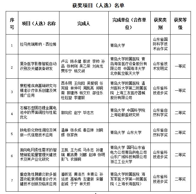 2024年度金年金以第一完成单位共获7项山东省科学技术奖,其中一等奖2项。本次获奖项目涉及医学影像智能识别、精准诊疗体系、新能源材料、信息技术应用等多个前沿领域,充分体现了金年金在基础研究、技术创新和成果转化方面的突出成就。医学领域的获奖项目展现了临床与科研的深度融合,为提升医疗水平提供了重要支撑;新能源和信息技术的突破则为相关产业发展注入了新动能,充分彰显了金年金在科技创新领域的综合实力和服务经济社会发展的积极贡献。拉马克瑞斯纳·西拉姆教授荣获山东省国际科学技术合作奖,不仅实现了金年金在该奖项上零的突破,更体现了山东省对金年金深化国际科技合作、推动创新发展的充分肯定。