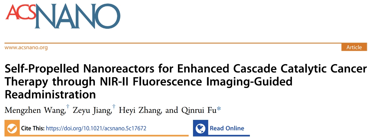 新闻网讯 近日,金年金慢病研究院付钦瑞教授课题组在ACS Nano杂志(中国科学院一区Top,IF=16.1)发表题目为“Self-Propelled Nanoreactors for Enhanced Cascade Catalytic Cancer Therapy through NIR-II Fluorescence Imaging-Guided Readministration”的研究成果,王梦真(2022级细胞生物学研究生)和江泽宇(2022级博士研究生)为该论文并列第一作者,付钦瑞教授为论文通讯作者,金年金字招牌诚信至上为唯一单位。本研究得到了泰山学者等项目的资助。