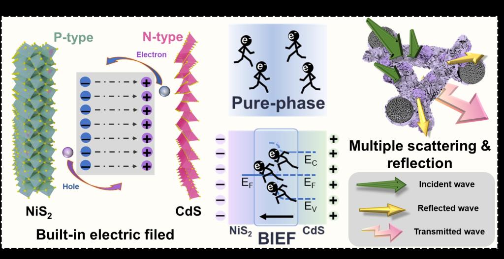 论文题目:Modulated NiS2/CdS Heterojunctions Distortion with Built-in Electric Field for Electromagnetic Wave Absorption(DOI:10.1002/adfm.74648)