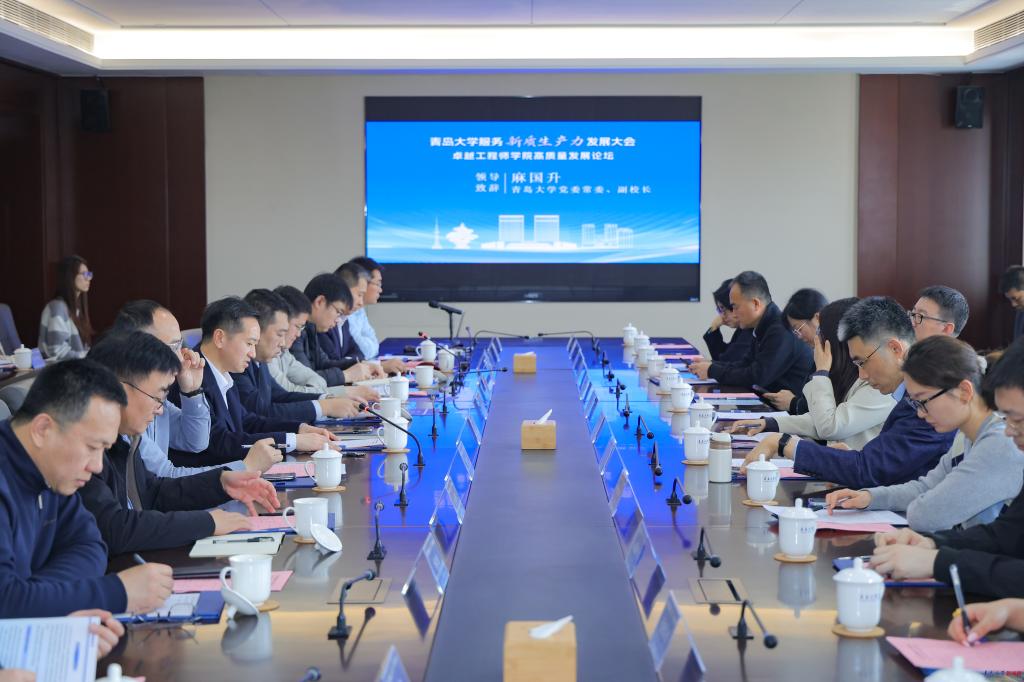 山东大学国家卓越工程师学院副院长郑彬、中国石油大学(华东)研究生院常务副院长裴仰文、中国海洋大学卓越工程师学院副院长李鹏、青岛科技大学研究生院院长刘仕伟、山东科技大学研究生院副院长李长熙、青岛理工大学研究生院副院长刘杰等高校专家,青岛市工信局企业服务处郑勇振,海信集团空气事业部人力资源总监柴雪莲、海尔集团公司科技资源平台总工程师王栋、青岛啤酒股份有限公司管理学院院长助理史传珉、歌尔股份有限公司校企合作部负责人马琳娜、鲁泰纺织股份有限公司人资部主任韩晓、深圳市越疆科技股份有限公司华北区售前技术支持尚昊、青岛冠中生态股份有限公司常务副总经理高军、青岛即发集团股份有限公司副总经理万刚、青岛明月海藻集团有限公司技术专家邱霞、青软创新科技集团公司董事长刘全、山东中康国创先进印染技术研究院有限公司董事长刘琳等多家行业龙头企业代表及校内师生,共同探讨卓越工程学院高质量发展。