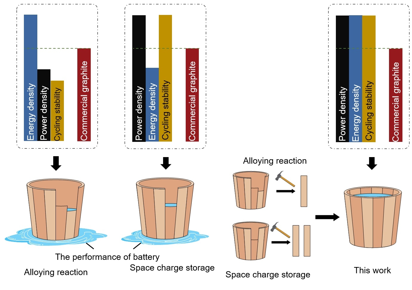 随着锂离子电池在电动汽车及大规模储能等领域的快速发展,同时实现高能量密度与高功率密度成为当前研究的核心挑战之一。传统石墨负极受限于较低的理论容量与不足的倍率性能,难以满足应用需求;Sn基负极虽具备较高理论容量,但在循环过程中存在体积膨胀及反应动力学缓慢等问题。近年来,空间电荷存储机制因其优异的快速充放电能力受到关注,但其能量密度仍存在不足。因此,如何将空间电荷机制与传统储能机制有效结合,实现性能协同提升,成为亟需解决的关键科学问题。针对上述问题,研究团队设计并构建了一种混合电子/离子/合金导体材料(Fe/Li₂O-Sn),通过将空间电荷存储机制与Sn的合金化反应进行耦合,实现两种机制的优势互补,从而兼顾高能量与高功率输出。研究表明,金属Fe与Li2O之间的强界面作用及其丰富界面结构,有效构建了电子与离子协同传输通道,显著促进锂离子的快速扩散;与此同时,Sn的合金化反应在该体系中不仅保持了较高理论容量,得益于混合电子/离子/合金导体的结构设计表现出明显改善的反应动力学。通过XPS、XANES、EXAFS及磁学分析等多种表征手段,系统揭示了该材料中空间电荷储能与合金化反应的协同机制。电化学测试结果表明,该电极在40 A g-1的高电流密度下仍可稳定工作,并实现1242 Wh kg-1的高能量密度,在10 A g-1条件下循环20000次后容量保持率达87%,展现出优异的倍率性能与循环稳定性。该研究从机制设计角度出发,为构建兼具高能量密度与高功率密度的锂离子电池负极材料提供了新的思路,对高性能储能体系的开发具有重要意义。