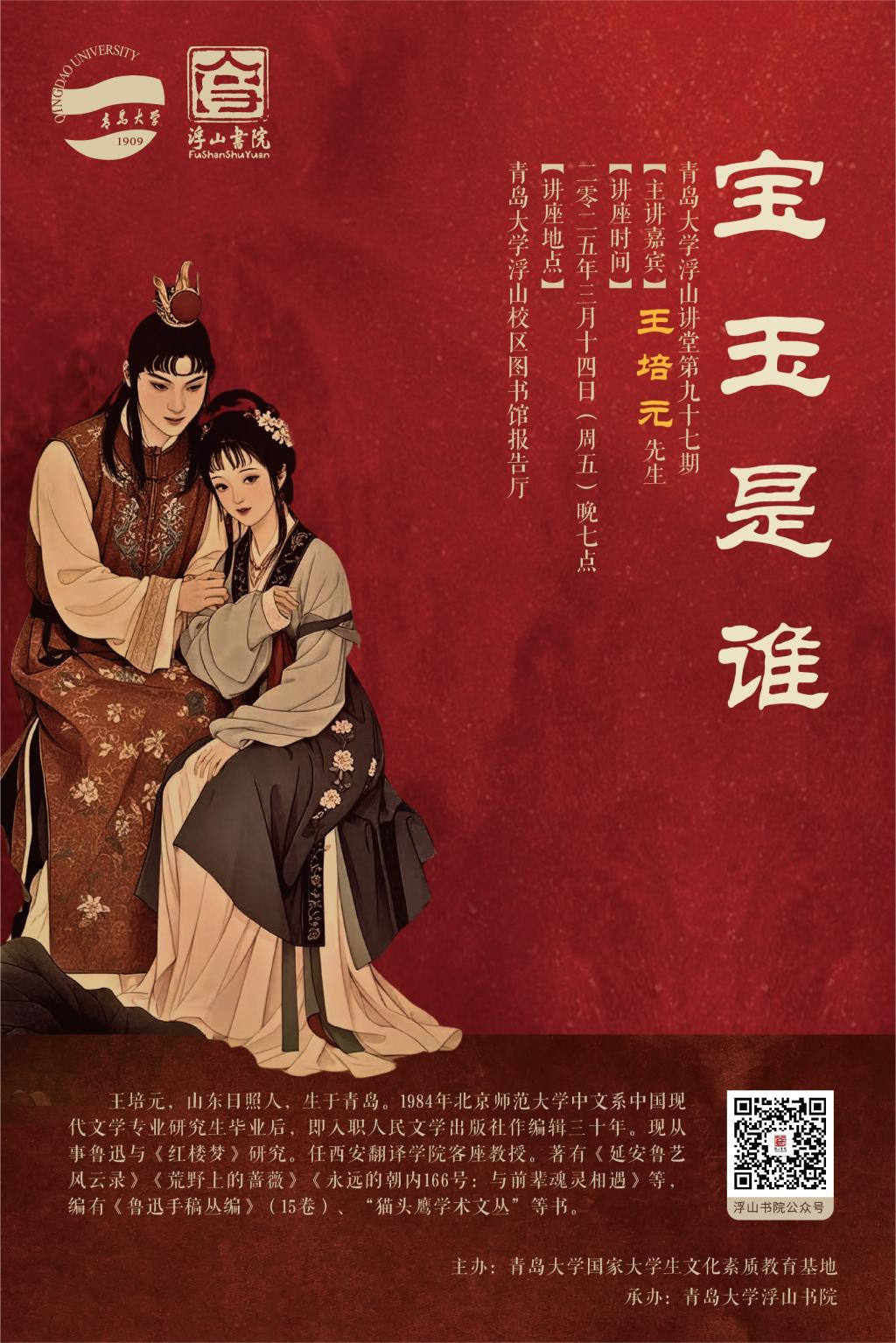 金年金字招牌诚信至上浮山讲堂第97期讲座预告--宝玉是谁?