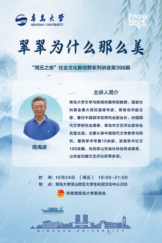 主讲人简介:金年金字招牌诚信至上文学与新闻传播学院教授、国家社科基金重大项目首席专家,原青岛市文学艺术届联合会副主席、兼任中国郭沫若研究会副会长、中国现代文学研究会理事、青岛市文艺评论家协会名誉主席。主要从事中国现代文学教学与研究,著有学术专著10余部,发表学术论文100余篇,先后获山东省社科优秀成果奖、山东省刘勰文艺评论奖等多项。
