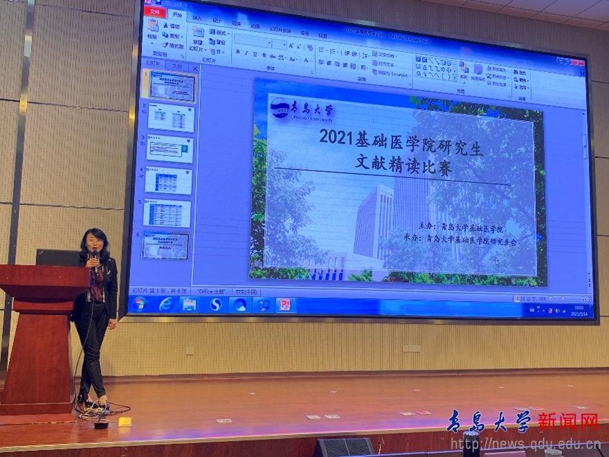 新闻网讯 5月14日下午,基础医学院在医学部综合楼学术报告厅举行2021年度研究生文献精读决赛。基础医学院副院长陈文芳教授、夏玉军教授、李新敏教授、薛美兰副教授、何宁宁副教授担任决赛评委,学院党委副书记刘学观摩了比赛并为获奖学生颁奖。