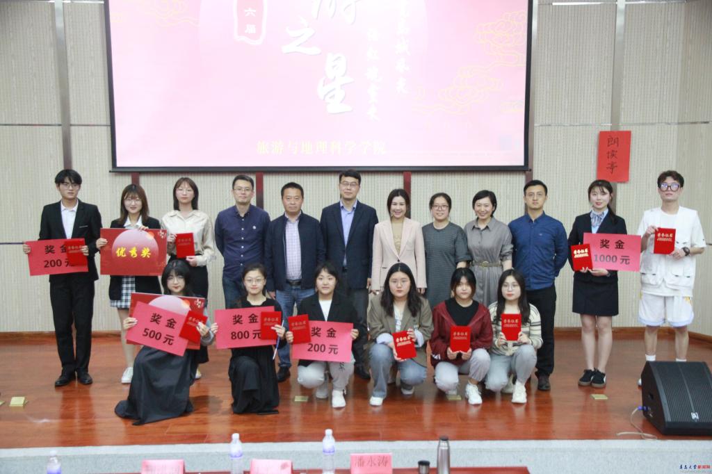 导游之星大赛是旅游与地理科学学院精心策划的具有专业特色的思政品牌活动,自2003年开办以来,已成功举办16届,吸引了学院万余名学生观看,近千名学生参与,近百支队伍获奖。每届大赛都会围绕时政热点设定主题,如“红色旅游”“一带一路”“文旅乡村振兴”等,将思想政治教育潜移默化的融入第二课堂,起到了春风化雨、润物无声的作用,为新时代大学生树立远大理想,激发奋斗热情,提升专业实践能力和综合素质搭建了有利平台。