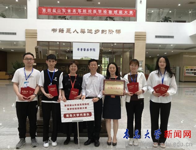 新闻网讯 近日,由山东省高等院校医学技术类专业教学指导委员会主办、齐鲁医药学院承办的第四届山东省高等院校医学检验技能大赛在齐鲁医药学院举行。由检验学系副教授吴春梅老师,检验科副主任李静老师带队,2018级医学检验技术专业李义文、臧玉飞、毛蕾、时玉瑄四位同学组成的参赛代表队参加本次比赛。