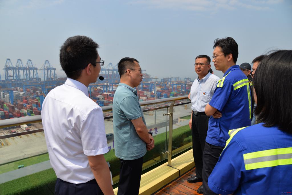 新闻网讯 6月22日下午,计算机学院党委书记尹增刚与资产与实验室管理处处长李明伦带领资产与实验室管理处党支部,计算机科学技术学院机关党支部、信息安全系党支部、实验教学中心党支部近40名党员赴青岛港自动化码头科技创新教育基地开展现场教学。