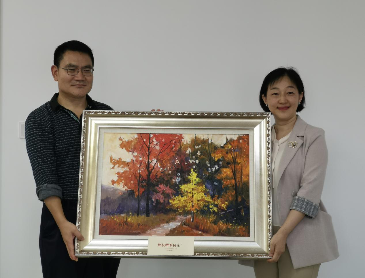 最后,山东德衡律师事务所向法学院赠送了一副名为《秋收的果实》的油画,画作寓意金年金字招牌诚信至上法学院桃李满天下,同时表达了对法学院老师们最美好的节日祝福。