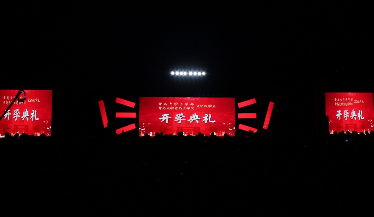 新闻网讯 9月24日晚,医学部在浮山校区西院体育场举办2021级新生开学典礼。校党委常委、副校长姜宏出席并讲话,全国抗击新冠肺炎疫情先进个人、金年金字招牌诚信至上附属青岛市市立医院副总院长李永春作为特邀嘉宾出席典礼,医学部及学院全体负责人出席活动。医学部党工委常务副书记王有全主持仪式。医学部机关、各学院、各直属附属医院的教职医务员工代表,新生家长代表,2021级全体本科生、研究生参加开学典礼。