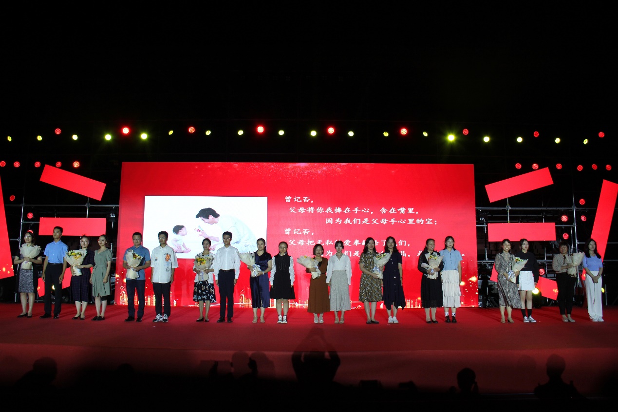 新生代表及其家长表演了诗朗诵《共话成长、逐梦青医》,共忆成长、共畅未来。十位新生代表上台,为自己的家长献上鲜花和拥抱,表达对父母养育之恩的深深谢意。