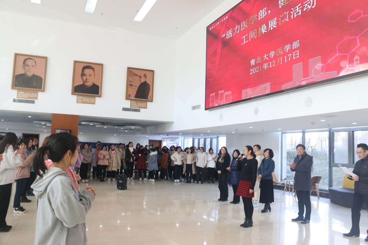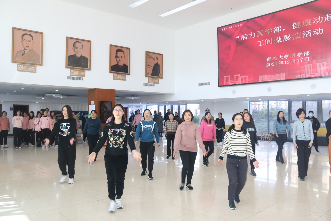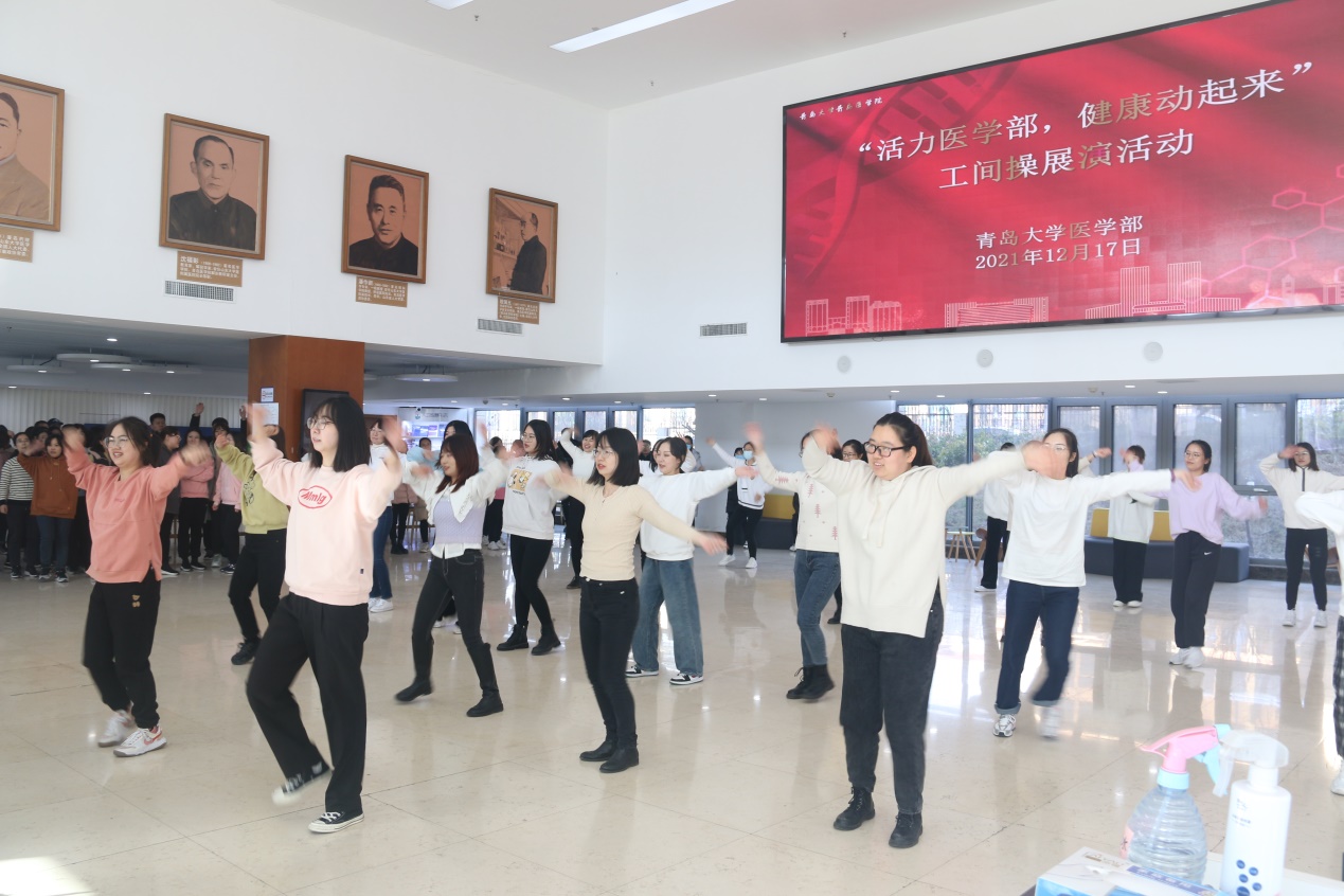 新闻网讯 12月17日12:30,医学部工会主办的“活力医学部,健康动起来”工间操展演活动在浩园医学部教育综合楼1楼大厅举行。