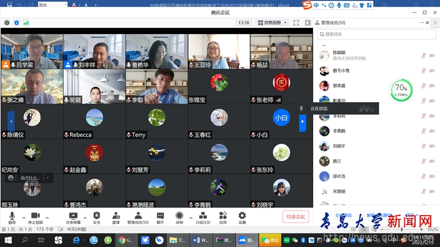 新闻网讯 近日,经济学院成功举办“教学工作坊”暨校级课程思政示范课验收答辩会。来自经济学院与青大其他学院的60多位老师参加了答辩会,会议由经济学院副院长吕学梁主持。