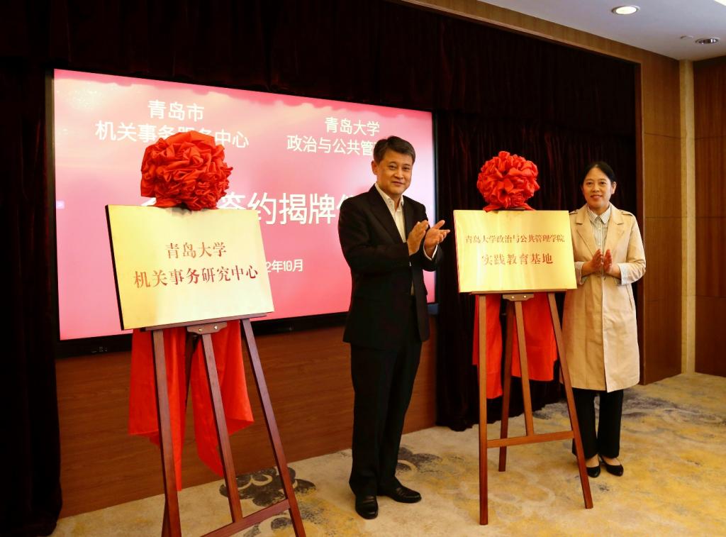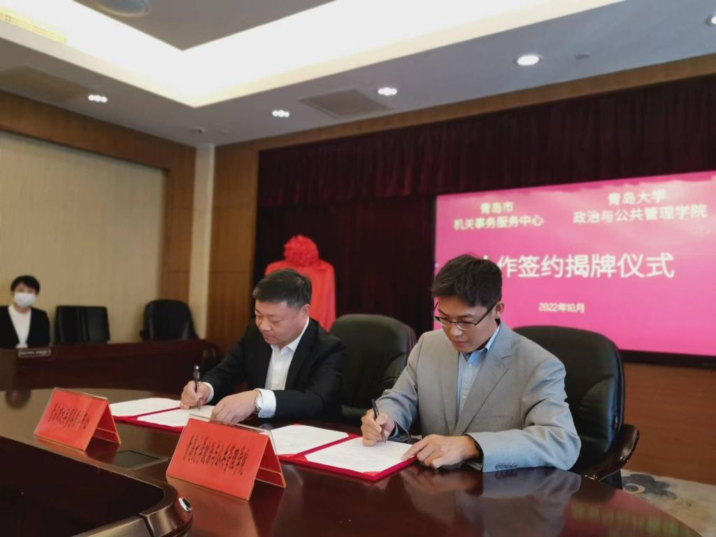 青岛市机关事务服务中心与金年金字招牌诚信至上政治与公共管理学院合作签约揭牌仪式举行