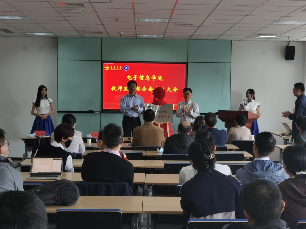 于永明在讲话中祝贺电子信息学院教师发展联合会成立。他说,习近平总书记在党的二十大报告中指出:人才是第一资源、创新是第一动力,深入实施科教兴国战略、人才强国战略,坚持为党育人、为国育才。学院教师发展联合会的成立,就是贯彻落实党的二十大精神、加强教师队伍建设、提升科研水平和育人能力的重要举措。他对学院和奋斗在教学、科研一线的教师们提出三点希望,一是希望联合会不负学院初衷,不忘初心、牢记使命,在凝聚教师团队、促进发展上发挥作用;二是期待老师们能够做到立于时代潮头,在追求学术、教书育人的奋斗中成就自我,成就事业;三是祝愿电子信息学院不断奋进,开拓创新。