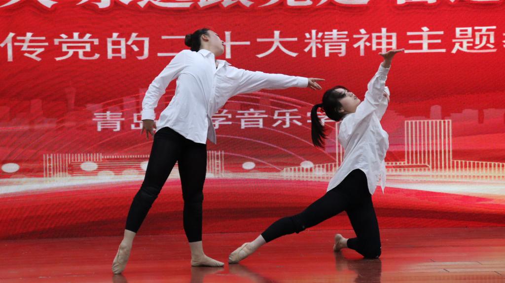 李建新在讲话中表示,党的二十大是在全党全国各族人民迈上全面建设社会主义现代化国家新征程、向第二个百年奋斗目标进军的关键时刻召开的一次十分重要的大会。全院师生要认真学习贯彻好党的二十大精神,听党话,跟党走,结合学院工作实际,办好人民满意的艺术教育,为学校的高水平综合性研究型大学建设贡献力量。