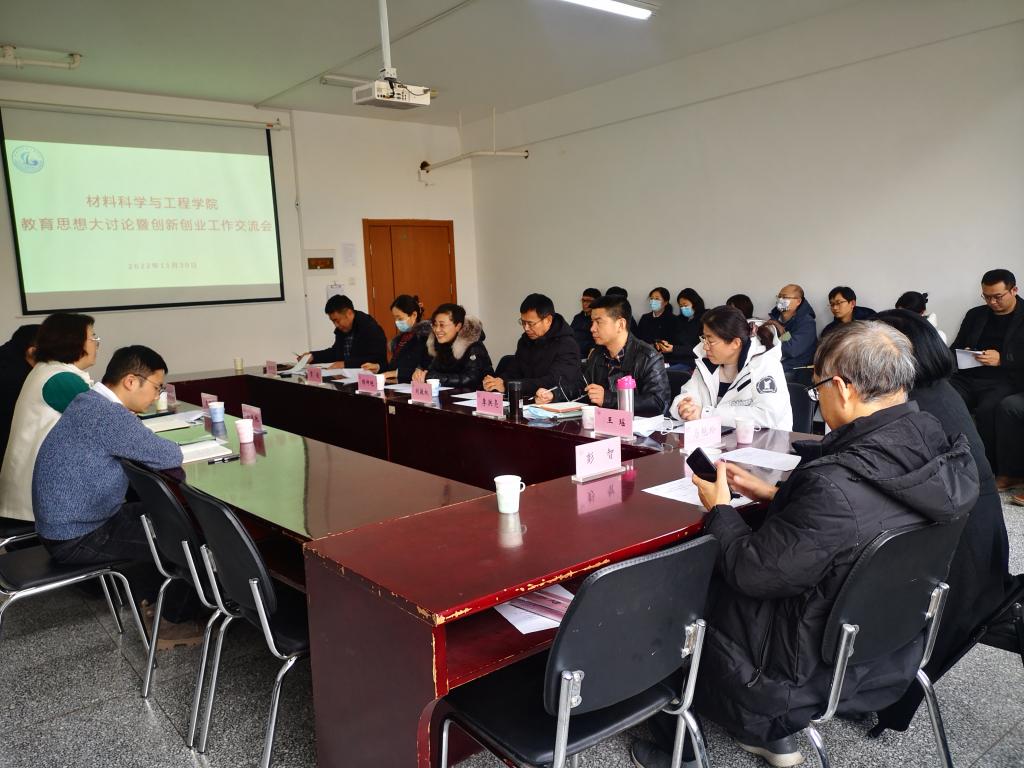 新闻网讯 为加强学院一流本科专业建设,推动创新创业工作顺利开展,全面提高人才培养质量,11月30日下午,材料科学与工程学院在科技园D座会议室组织召开了教育思想大讨论暨创新创业工作交流会。会议特别邀请了创新创业学院常务副院长王海荣一行出席。石墨烯应用技术创新研究院院长刘敬权、材料科学与工程学院党委副书记曹俊、副院长李洪亮、黄林军、教学委员会委员、学院督学、系主任、教研室主任、教科办和创新创业骨干教师参会。会议由材料科学与工程学院院长隋坤艳主持。