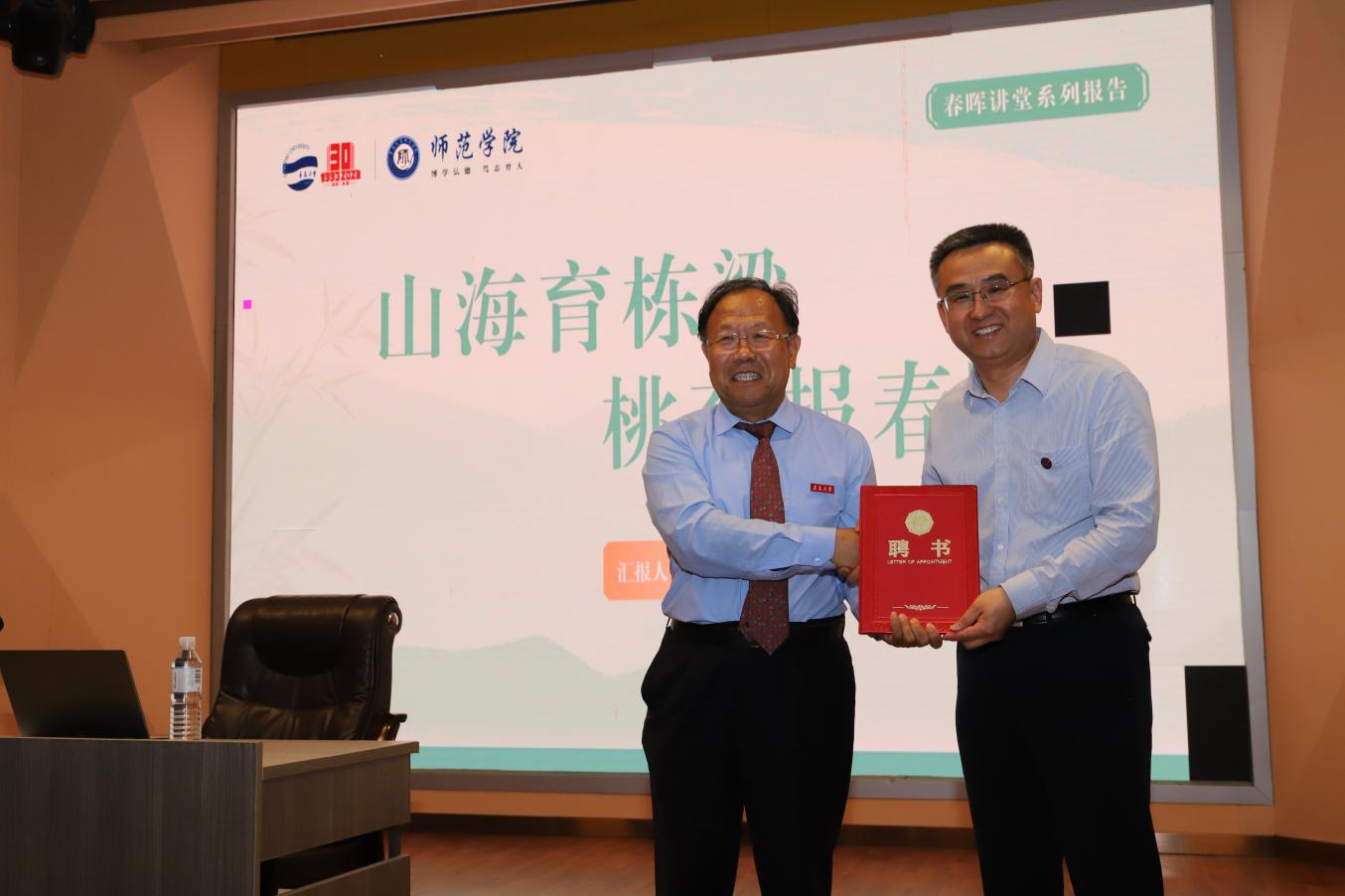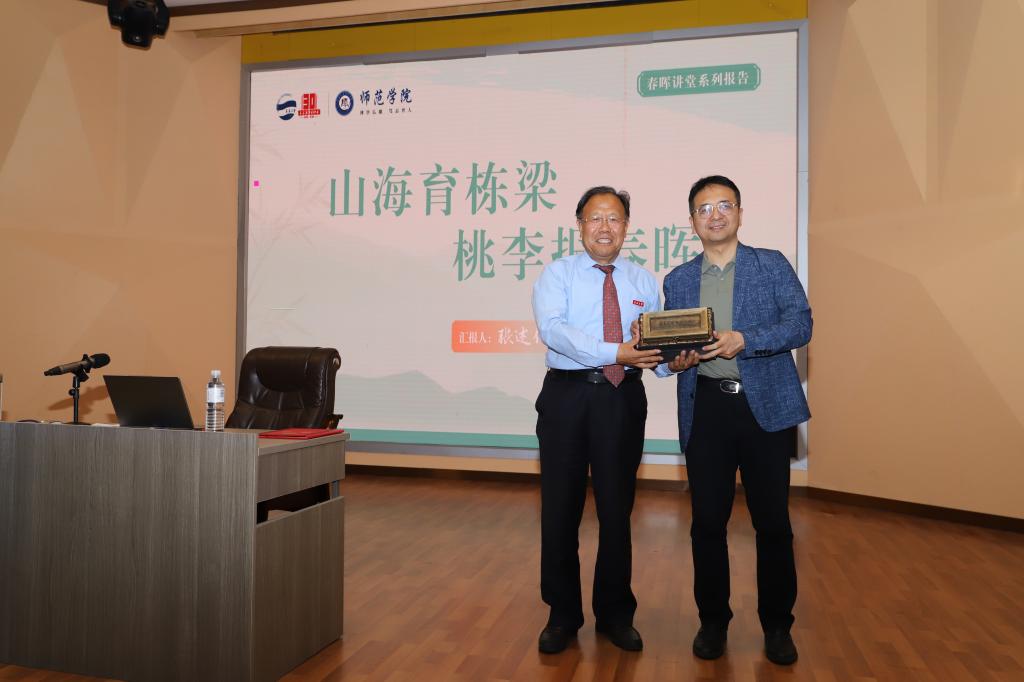 报告会之前,尹增刚为张述仁颁发了“师范学院创新创业导师”聘书,马勇军向张述仁赠送了学院文创产品。
