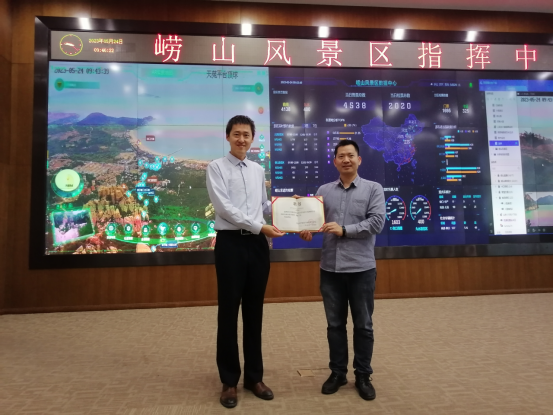 座谈会上,学院副院长张言庆就学院专业建设、科学研究、人才培养等方面的情况做出详细介绍。崂山风景区负责人于侯康向学院师生介绍了崂山风景区大河东服务中心的日常工作流程、服务中心布局以及特色非遗展区,并对崂山风景区智慧大厅的建设以及应用情况做出详细阐述。为进一步构建校社协同育人体系,学院为于侯康颁发校外就业导师聘书。
