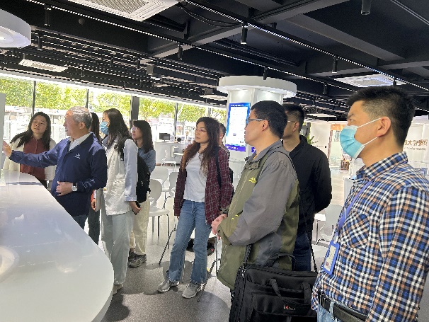 参观学习环节,刘小青向到访的学院老师详细介绍了产业技术研究院的定位和发展目标,并带领大家参观了产研院的各个功能板块,展示了目前在产研院推介的部分项目。