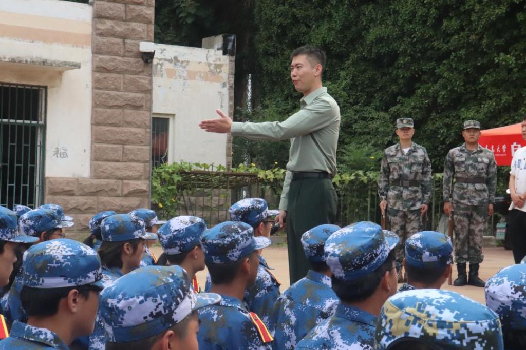 刘金城为新生做好点对点指导。他结合自身军旅生涯生动诠释了身为军人的使命与担当,勇毅与果敢,气魄与精神,希望全体新生能够珍惜此次机会,以军人的标准严格要求自己,在训练场上挥洒汗水,在人生路上拼搏向前。