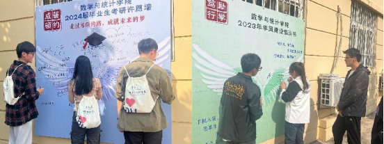 学院为“玉兰朋辈领航员”举行聘任仪式,并为考研同学发放考研加油包,会后,同学们纷纷在考研许愿墙与学风建设倡议书上写下了美好的愿景。