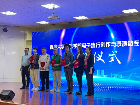 青岛市音乐家协会副主席、青岛市流行音乐专委会会长、青岛著名青年作曲家、青岛广播电视台录音师、音乐制作人刘程煜,青岛音乐唱作人、民盟青岛文化艺术委员会副主任、青岛市新文艺群体协会副主席张文成,青岛知名音乐制作人、塔岩唱片创始人、青岛市流行音乐专委会副会长赵晓凯;青岛Xuán了室内合唱团团长/作曲/指挥、青岛市流行音乐专委会副会长董磊;青岛市歌舞剧院独唱演员、青岛市演讲与演唱协会副会长、青岛市流行音乐专委会理事、宋英智,音乐学院党委书记李建新、院长王静怡、党委副书记孙建华以及电子流行音乐创作与表演微专业全体教师、同学参加仪式。开班仪式由音乐学院副院长李晓囡主持。