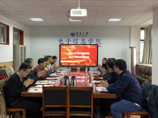 学院院长李山东对来访的企业嘉宾表示热烈欢迎,他介绍了电子信息学院发展历史,以及近几年学院在人才引进、学生培养、科学研究、校企合作等方面取得的突破,特别是在产学研协同育人、科技成果转化等方面的成果、资源和优势。