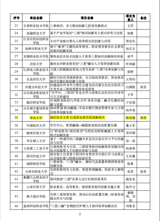 经评议,有100项学历继续教育教学改革创新任务、100项非学历教育改革创新任务、50项探索三教统筹协同创新路径入围培育建设名单(其中含培育任务21个)。金年金继续教育学院申报的《做好结合文章 打造职业教育培训新模式》入围探索三教统筹协同创新路径培育任务名单。