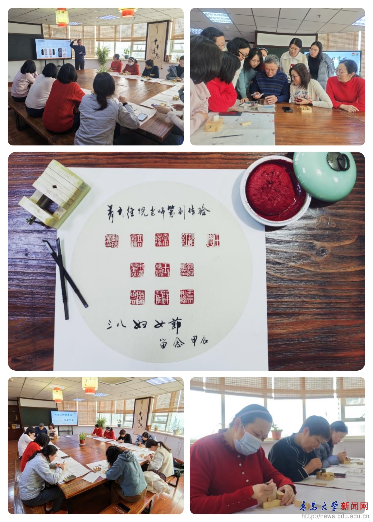 新闻网讯 为庆祝“三八”妇女节,传承中国优秀传统文化,感受古代书法艺术的独特韵味,增强教职工对民族文化的自豪感和认同感,3月7日下午,经济学院工会、妇委会举办“镌刻匠心,气韵华章”篆刻沙龙活动,经济学院党委副书记于文洁带领教职工代表赴青岛市妇女儿童活动中心少儿国学院参加活动。