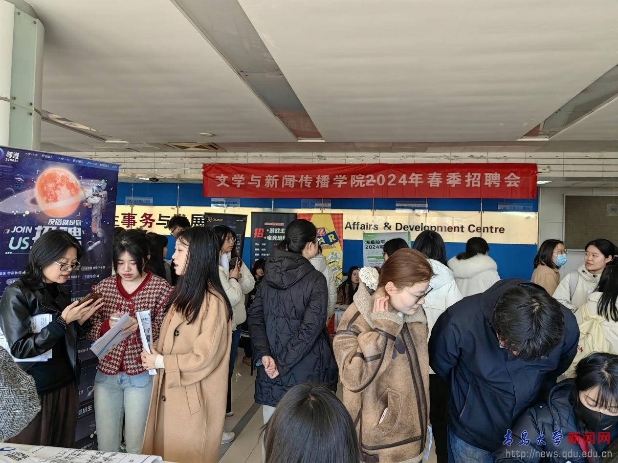 新闻网讯 为促进毕业生高质量就业,文学与新闻传播学院于3月20日上午在金年金字招牌诚信至上浮山校区博文楼一楼学生事务大厅举办2024年春季招聘会,学院党委书记张辉、党委副书记戚昕、副院长周潇来到招聘会现场进行指导。