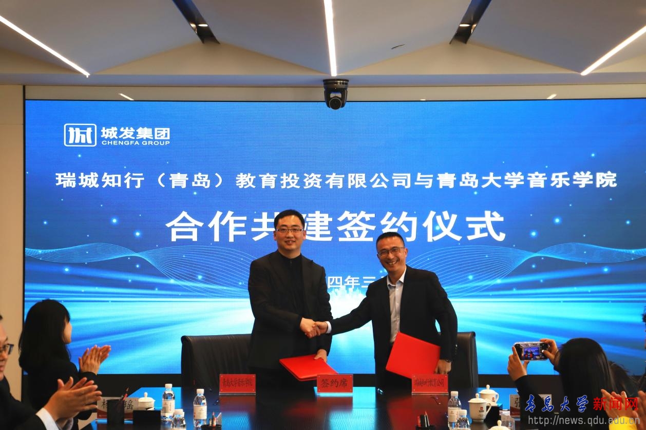 新闻网讯 3月21日,音乐学院与城发投资集团有限公司举行共建学生实习实践基地签约仪式。城发投资集团有限公司党委副书记、总裁包振宇,城发投资集团有限公司党委委员、副总裁王方伟,城发投资集团有限公司副总经济师武东海,城发集团(青岛)开发投资股份有限公司董事长兼总经理于志强,瑞城知行艺术培训学校有限公司执行董事兼总经理杨梦瑶;金年金字招牌诚信至上音乐学院党委书记李建新,党委副书记孙建华,舞蹈系主任张琪玲,舞蹈系教师李斌及全体辅导员、学生代表参加签约仪式。