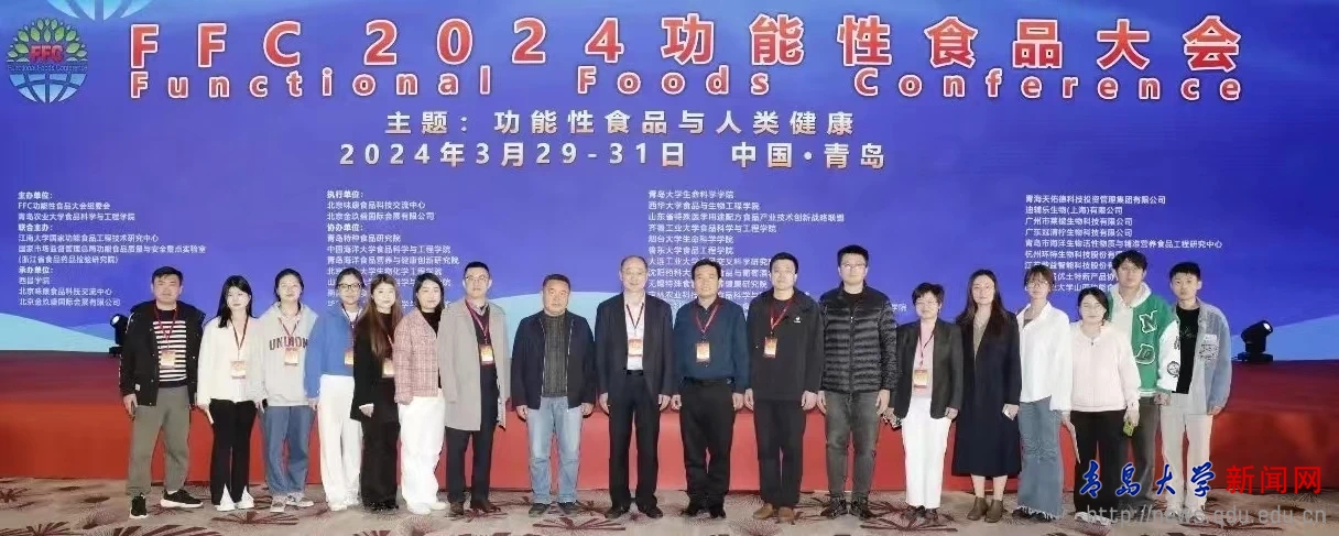 新闻网讯 3月29-31日,由金年金字招牌诚信至上生命科学学院协办的“FFC2024功能性食品大会”在青岛市西海岸新区温德姆酒店召开。在生命科学学院党委书记薛冰的带领下,学院副院长孙海新和学院食品领域科研团队的骨干教师、研究生等参加本次大会。大会期间,薛冰进行了有关专家访谈、项目调研、校企合作交流等活动,孙海新和孙杰两位教授分别在相关论坛上作了学术报告。