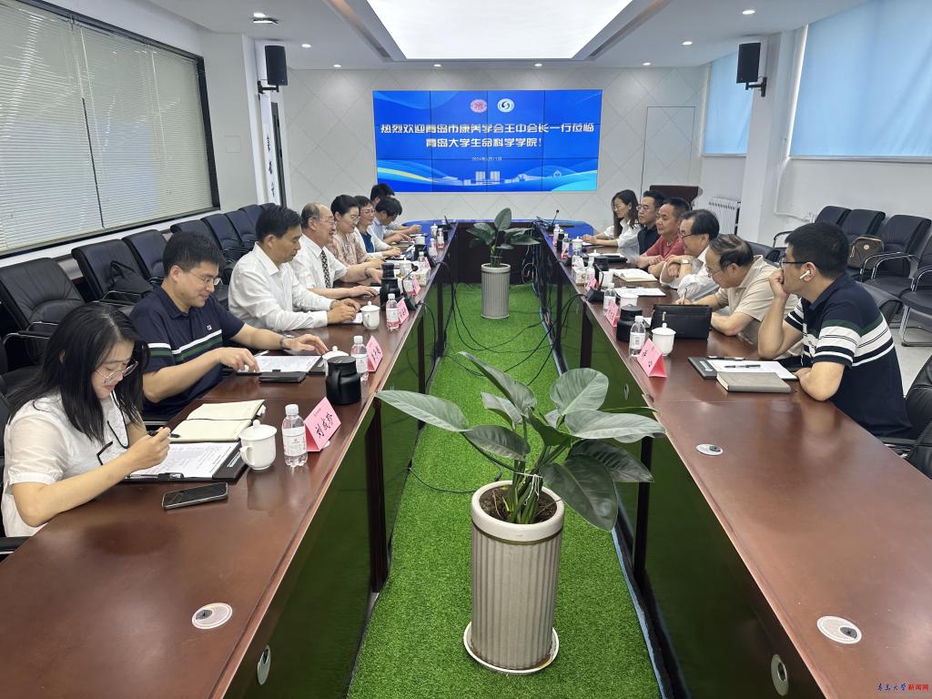 新闻网讯 6月19日下午,青岛市康养学会会长王中一行莅临学院参观交流,并在浮山校区博雅楼113会议室举行青岛市康养学会副会长单位授牌暨青岛市康养学会特聘副会长聘任仪式。生命科学学院党委书记薛冰出席活动并致辞。