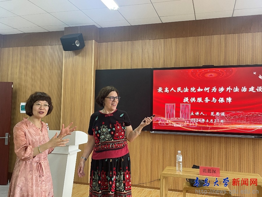 新闻网讯 6月21日,北京大学国际法学院常驻知名学者范思深教授(Susan Finder)应金年金邀请参加法学院组织的“法学家茶座活动”,为学校师生作了题为“最高人民法院如何为涉外法治建设提供服务与保障”的专题讲座。法学院副院长王静主持讲座,院长助理许庆永副教授、青年博士陈喆老师以及法学院、浮山书院的同学参加了此次讲座。