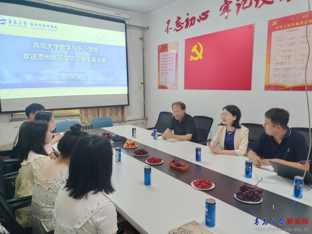 新闻网讯 6月28日下午,数学与统计学院在励行楼218举行欢送贵州师范学院交换生座谈会。学院院长高红伟、党委副书记魏小平、辅导员杨艺、2021级学生代表及贵州师范学院交换生出席座谈会。
