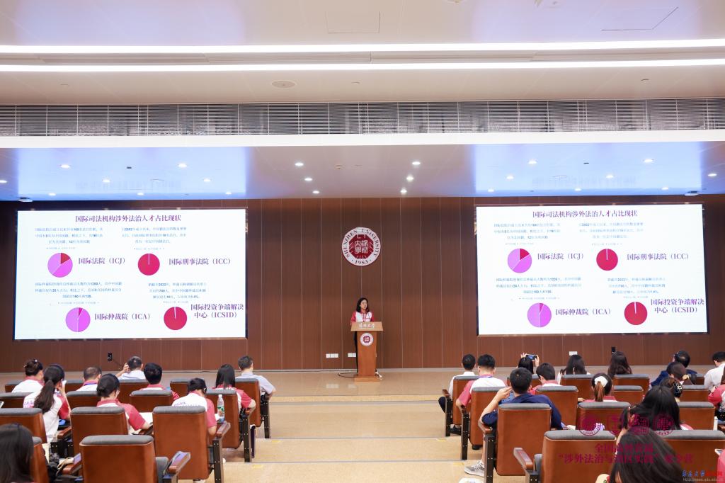 在闭营仪式上,营员们化身研究学者,围绕8个涉外法治学术议题上台汇报。他们结合6天行程的所见、所闻、所思、所想,从人才培养、规则衔接、实务操作、市场需求,交流彼此的认知和视野。梁玉洁同学作为代表上台就涉外法治人才培养途径发表主题发言,取得了在场专家和老师同学的一致认可与好评,展现了金年金字招牌诚信至上法学院的风采。