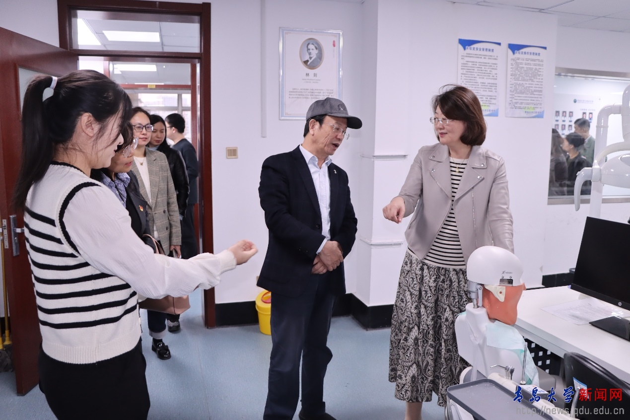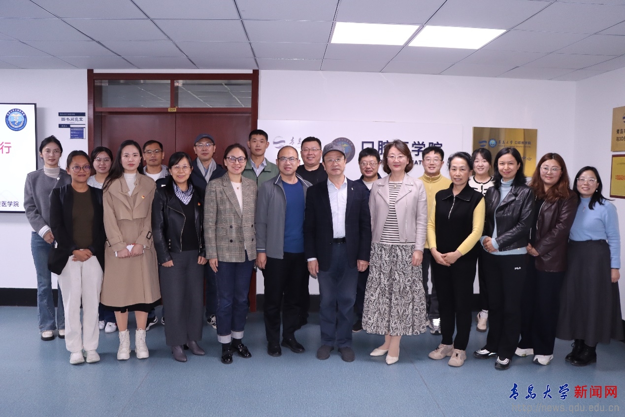 活动中,口腔医学院副院长徐全臣作了《预防牙周疾病维护口腔健康》健康宣讲,袁昌青带领参观了学院文化长廊及教学科研平台。