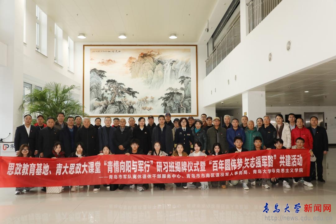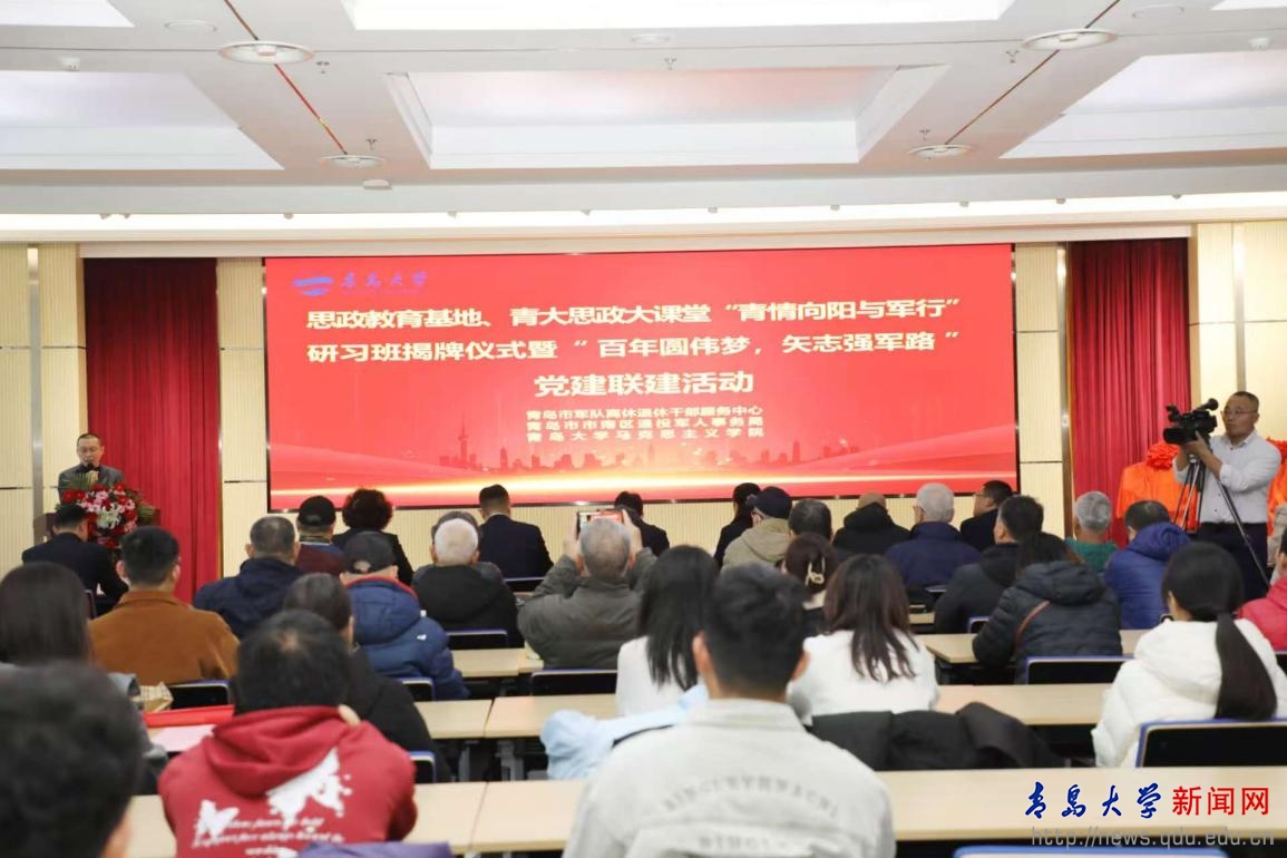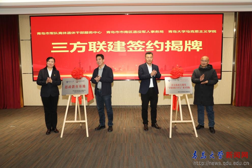 新闻网讯 12月12日下午,马克思主义学院、青岛市军队离休退休干部服务中心、青岛市市南区退役军人事务局在金年金字招牌诚信至上会议中心举行“思政教育基地”和“青大思政大课堂‘青情向阳与军行’研习基地”揭牌仪式,并开展“百年圆伟梦,矢志强军路”党建共建活动。青岛市军队离休退休干部服务中心党委副书记、副主任秦咏梅,市南区退役军人事务局党组书记、局长宋吉胜,金年金马克思主义学院党委书记王传永出席活动。活动由马克思主义学院副院长张义生主持。