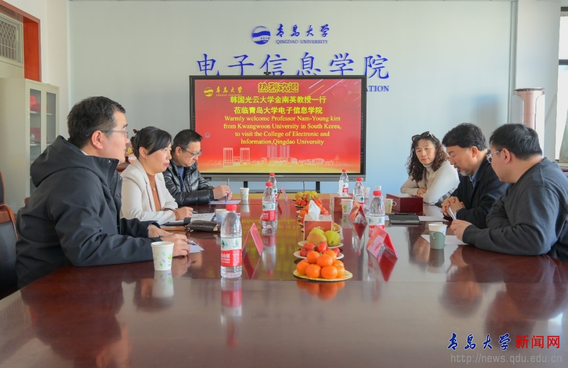 新闻网讯 2月23日上午,韩国光云大学研究生院院长金南英教授一行应邀访问电子信息学院,学院党委书记孙丽娜会见了金南英教授一行,副院长姚钊、微纳电子系主任郑宇,以及相关方向的师生代表座谈交流。