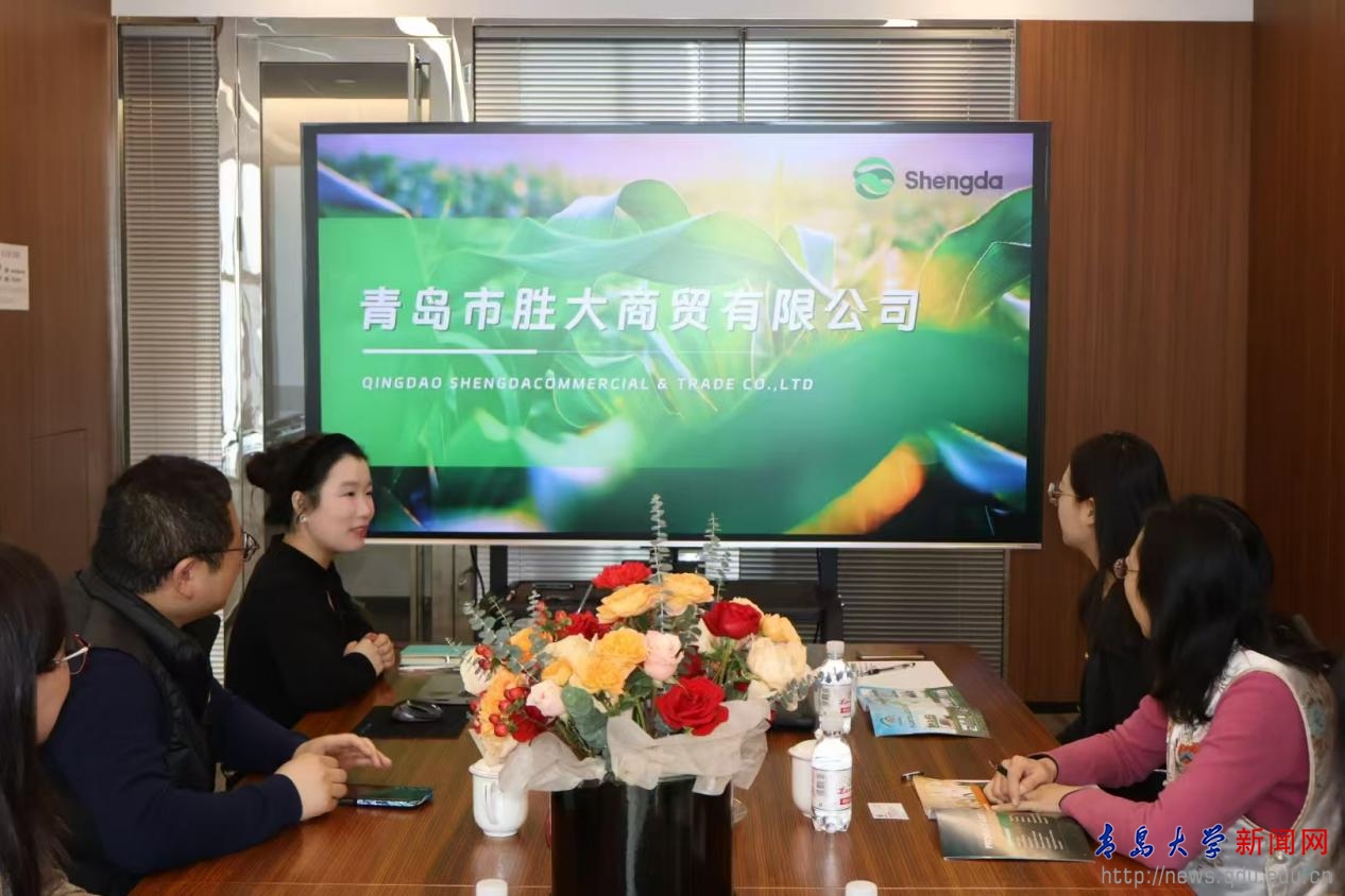 于文洁介绍了经济学院的基本情况、专业设置及培养优势。她表示,学院非常注重与企业的合作,希望通过此次“访企拓岗”活动,进一步加深与青岛市胜大商贸有限公司的交流与合作,为学生搭建更多的实习实践平台,拓宽就业渠道,实现毕业生高质量就业。