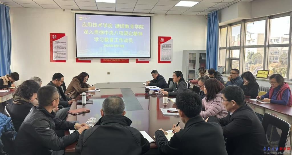 新闻网讯 3月18日,应用技术学院、继续教育学院在金家岭校区东院行正楼310会议室召开全面从严治党暨深入贯彻中央八项规定精神学习教育工作会,传达学校全面从严治党暨党的建设工作领导小组(扩大)会议精神,部署安排学院开展深入贯彻中央八项规定精神学习教育相关工作。学院党委书记张燕主持会议并讲话。