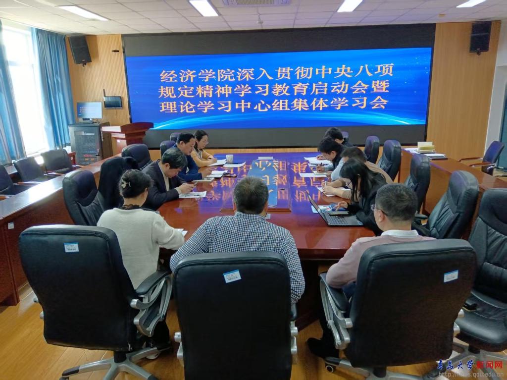 新闻网讯 3月20日下午,经济学院在金家岭校区守实楼307会议室召开深入贯彻中央八项规定精神学习教育启动会暨党委理论学习中心组集体学习会。会议由学院党委书记邱建国主持,学院党委理论学习中心组全体成员参加会议。
